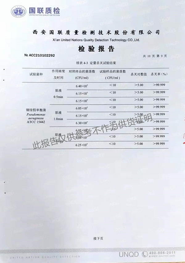 欣諾華牌復(fù)合季銨鹽消毒液(XNH100型)檢測(cè)報(bào)告