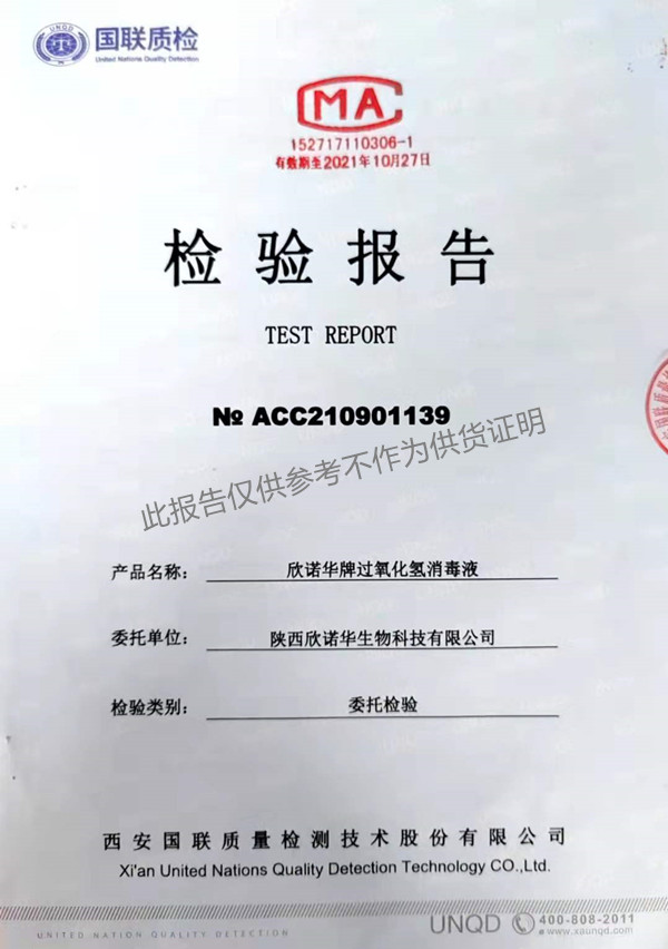 欣諾華牌過氧化氫消毒液(XNH705型)檢測報告(2021年度)-陜西欣諾華生物科技有限公司